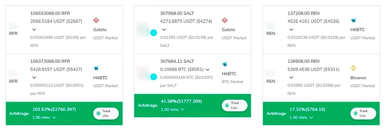Поскольку курс Tether к USDC примерно равен 1:1, заработок трейдера составляет около $1000 (без учета торговых комиссий). Сканеры для внутрибиржевого арбитража криптовалют позволяют находить такие возможности в автоматическом режиме. Алгоритм сверяет котировки площадок и выявляет диспропорцию между стоимостью разных активов. Трейдеру остается только внести депозит на криптобиржу и заполнить ордер-форму.