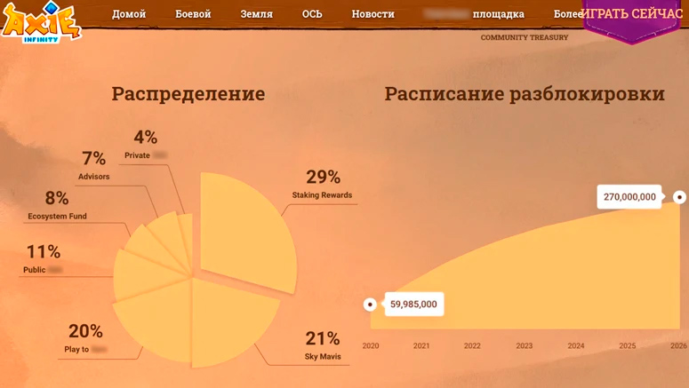 Для поддержания системы также разработаны служебные активы. Они используются для управления игровой вселенной. Токены AXS основаны на блокчейне Ethereum, используют стандарт ERC-20. Капитализация актива в начале 2022 года составляет $14 млрд. Владельцы применяют криптовалюту для инвестиций и стейкинга.