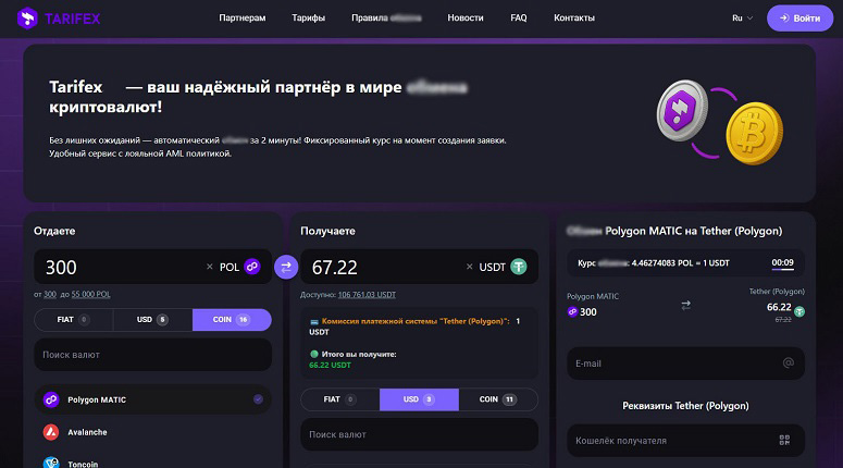 Онлайн-обменник Tarifex