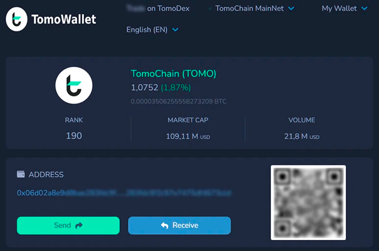 Разработчики реализовали собственный экосистемный кошелек. TomoWallet представлен только в виде онлайн-хранилища.