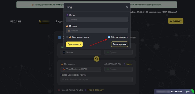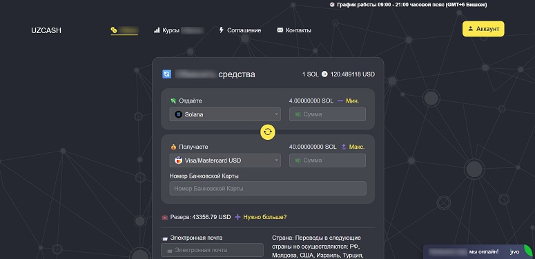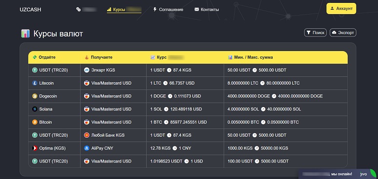 Служба поддержки обменника UzCash
