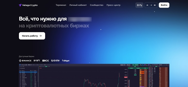 Vataga Crypto — платформа, ориентированная на внутридневных трейдеров и скальперов. Она постепенно расширяется, разрабатывая вспомогательные инструменты для торговли.