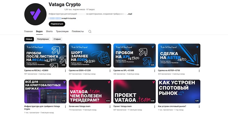Vataga Crypto ведет канал на YouTube, на котором регулярно выкладывает обучающие ролики. Зрителям предлагаются обзоры полезных функций и особенностей экосистемы, а также разборы конкретных сделок. Видео рассчитаны как на новичков, так и на профессионалов, которые хотят расширять свой трейдерский кругозор.