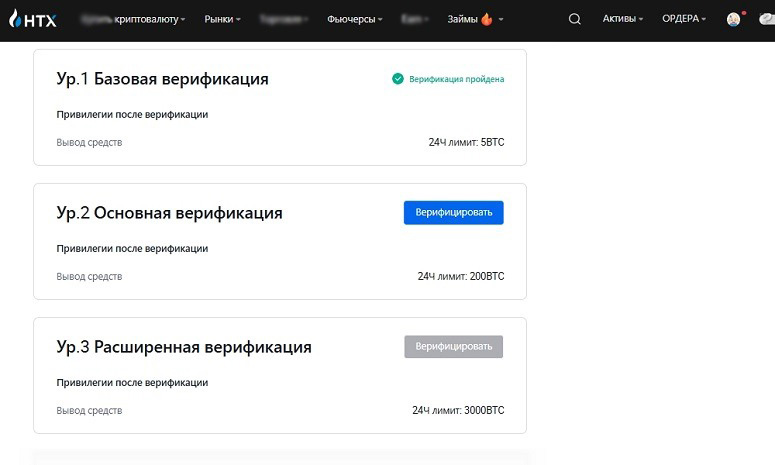Для торговли активами на криптовалютной бирже нужно создать аккаунт. Регистрация открывает доступ к пополнению баланса, покупке и продаже токенов. Для снятия ограничений на остальные операции требуется подтвердить учетную запись. Система KYC предусматривает несколько уровней. Новые пользователи могут пройти верификацию на HTX с российским паспортом или водительским удостоверением, указав персональные данные и загрузив цветные фотографии документов. Каждый следующий этап проверки повышает лимиты на вывод средств.