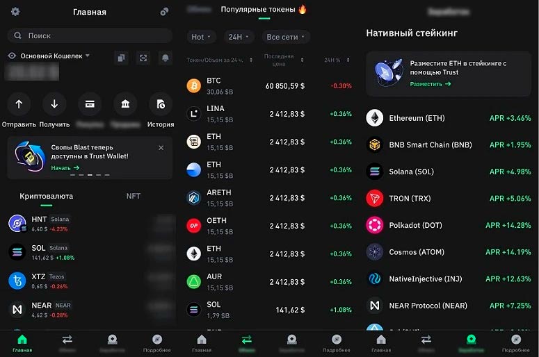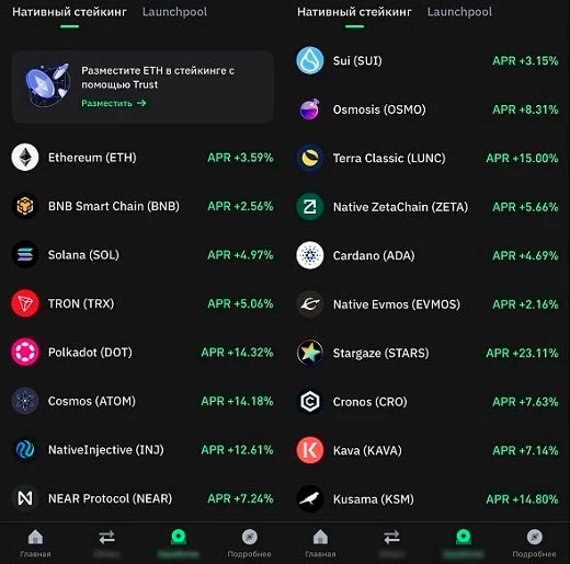 Многие Web3-кошельки позволяют поучаствовать в работе блокчейнов. Например, в Trust Wallet пользователям доступен стейкинг Ethereum, Tezos, Solana, TRON и других криптовалют.