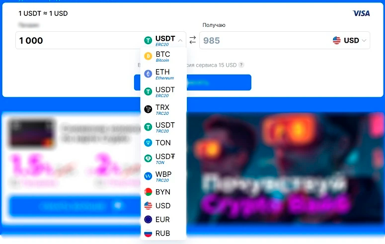 Пользователи сервиса могут менять все популярные цифровые монеты. Доступные варианты указаны в списке. В него входят такие криптовалюты, как Bitcoin, Tether (TRC-20, ERC-20, TON), TRON, Ethereum, Toncoin.
