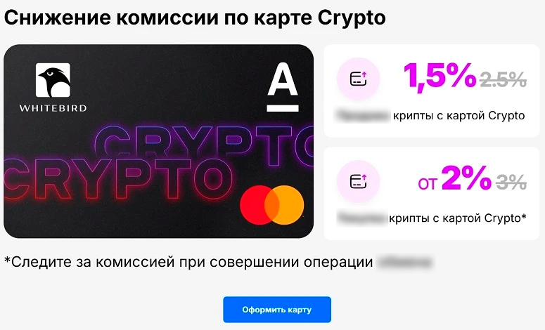 | Комиссия покрывает расходы на операции с картами, банковские услуги и затраты сервиса Whitebird. | |