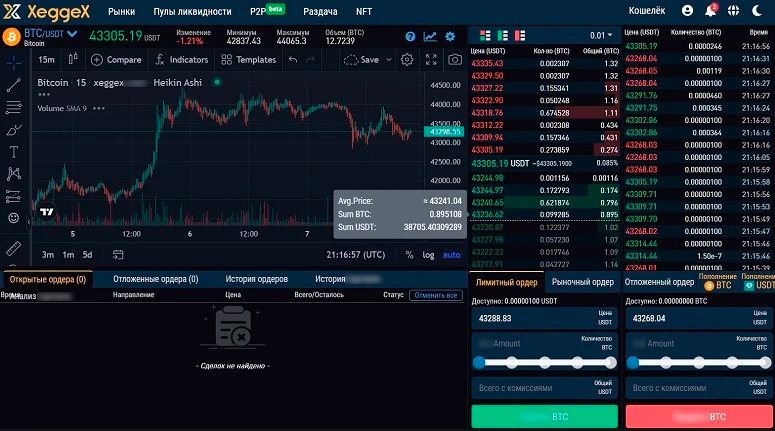 На бирже криптовалют XeggeX нет кредитования, поэтому для трейдинга можно использовать только объем собственного депозита. Такой вид торговли называется спотовым и считается наиболее распространенным. Чтобы заработать, нужно купить актив по меньшей цене и продать после повышения курса.